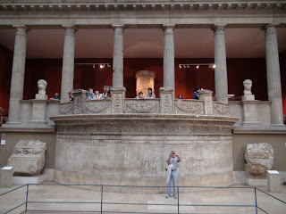 建於公元前160年的Pergamon祭壇模型, 是獻給宙斯與雅典娜的. 不要懷疑, 德國人把整個祭壇都運來了, 重建後就放在博物館內, 但是遊客實在太多, 還不如模型來的入鏡. 去土耳其可是看不到的喔, 那裏只剩下廢墟, 不禁要佩服德國人搬運古物的決心, 搶的太徹底了...